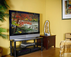Designed to allow for excellent ventilation, our Harmoni TV Stand will help keep your equipment running cool thus prolonging its life. With its 8mm Silk Screen Black Tempered Top glass Shelf, the Harmoni Stand can easily accommodate up to 60" LCD/Plasma TV and all your Audio / Video components. The UV bonded aluminum top caps will give the stand an aesthetic look that fits most modern home decor. Also, with the built-in cable management system, the Harmoni will present a clean tidy look on the TV Stand