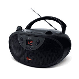 jWIN JXCD427BLK Portable CD Player with AM/FM Radio.20-Track programmable memory.Repeat-track One/All function.Skip and search functions.2-digit LED display.Integrated AM/FM radio Playable media.CD/CD-R/CD-RW.3.5mm Aux.in jack.Audio Output.o.8WRMSL 0.8WRMSR-Total.1.6WRMS/3.2WPeak/32WPMPO.Frequency Range-AM.530kHz-1710kHZ/FM.87.5MHz-108MHz Connectivity-3.5mm Aux.in jack /Power input jack.Power Requirement-AC 120V.60HzUSA.Canada-Battery.9V 6 x C or UM2 batteries.not included.Power,Consumption.15W.PartNumber.JXCD427BLK